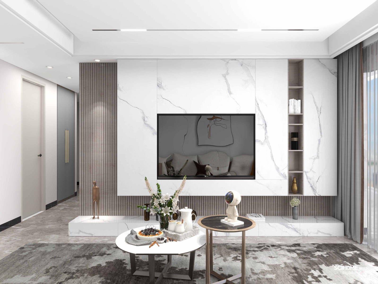 电视背景墙以大理石为主要亮点