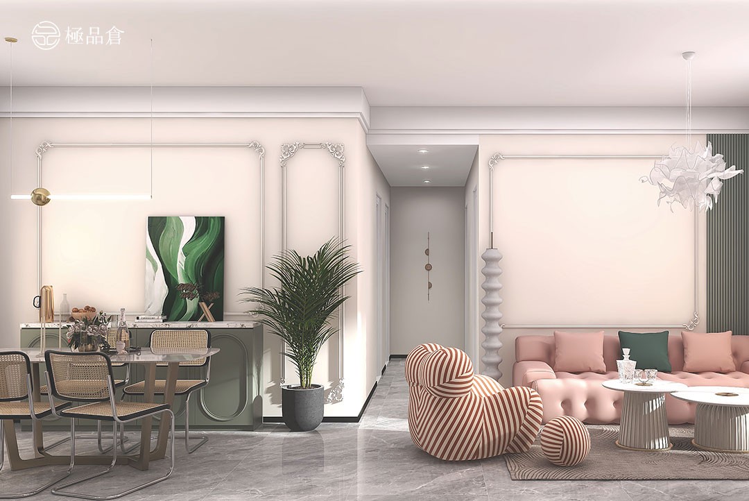 略带法式风情的现代简约风设计,亮色的沙发和休闲椅作为吸睛之处,层次感极强。