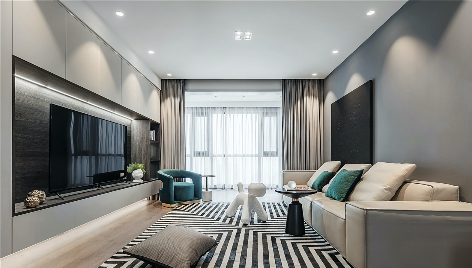 黑白条纹地毯是整个空间的精髓。