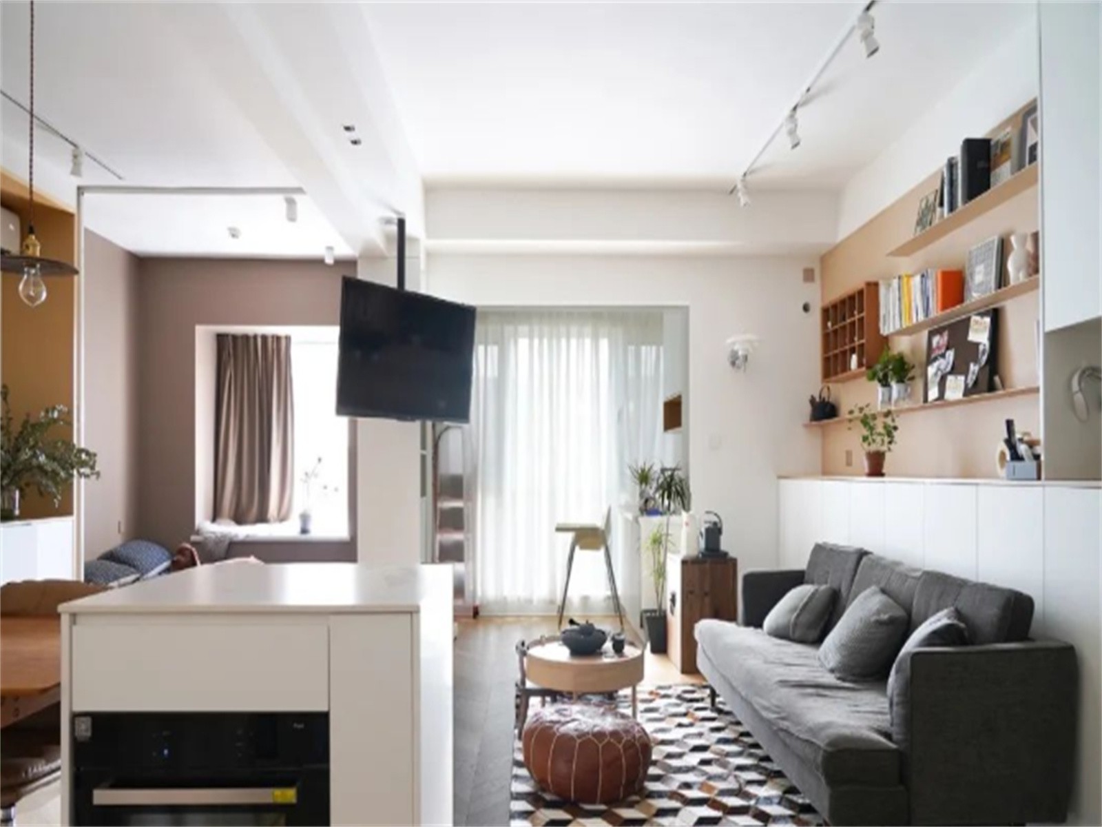 压缩后的次卧室做地台床,与客餐厅之间选择立川折叠门确保私密性,整个空间也更加灵活多变