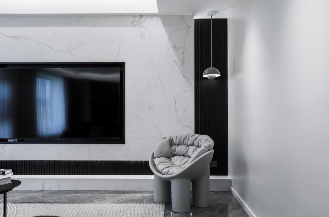 无主灯设计让客厅空间显得开阔 简约黑白搭配灰黑软装 给简约风注入了灵魂