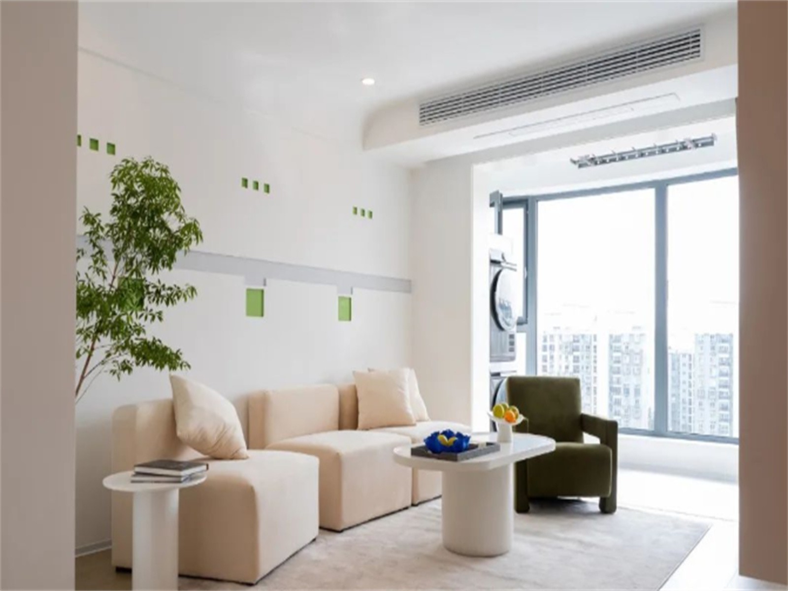 客厅纳入阳台,大面玻璃窗带来***的采光与视野,吊顶整体下吊三公分,设计点光源,让空间更显宽敞明亮