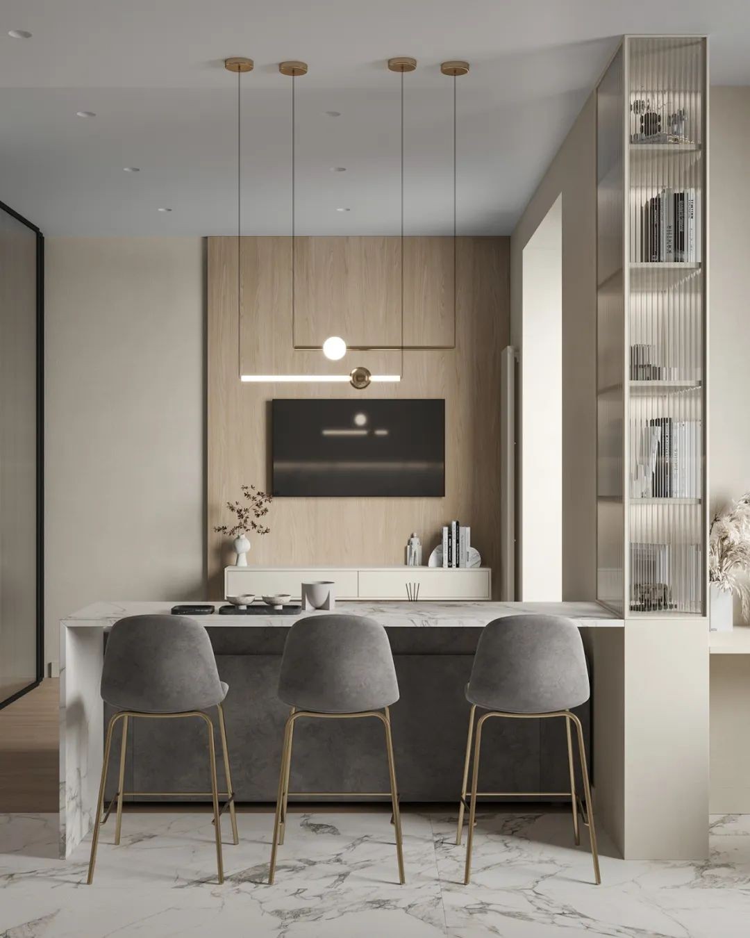 把客厅和厨房相隔开,旨在将烹饪美食的喜悦