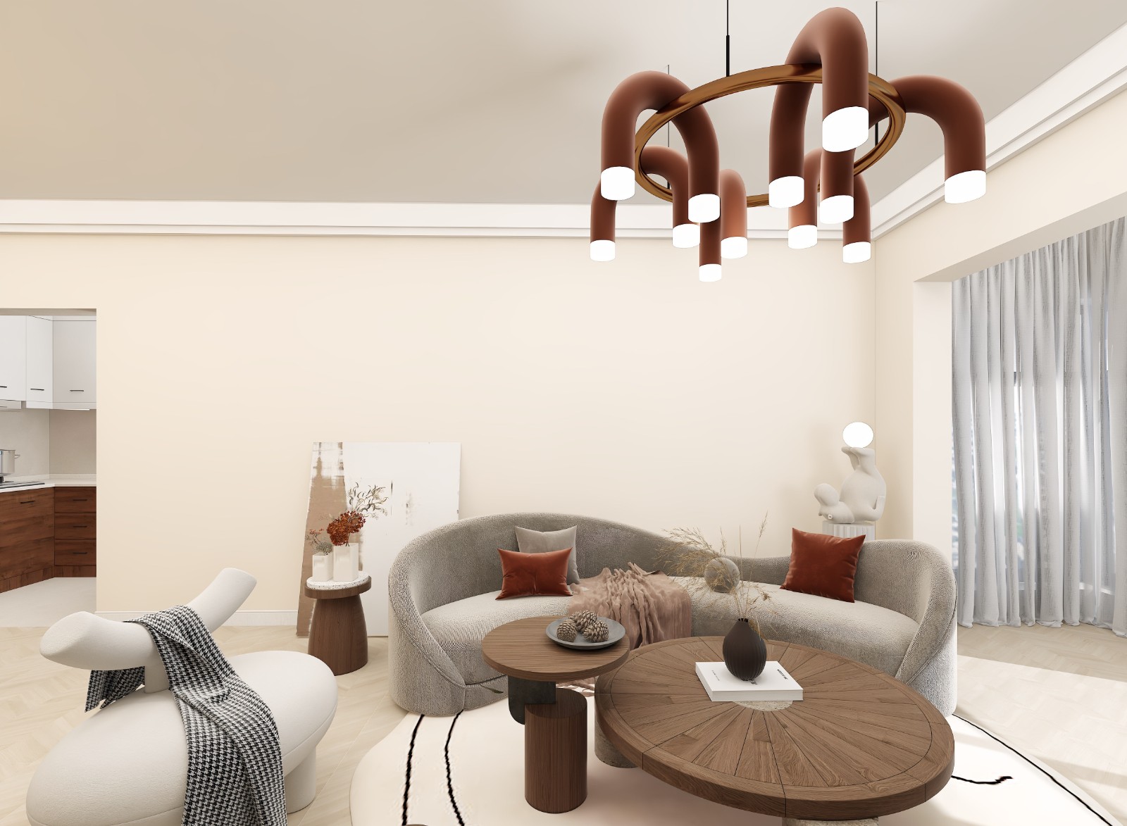 奶咖色的设计,很适合北欧设计,刚好是业主喜欢的颜色