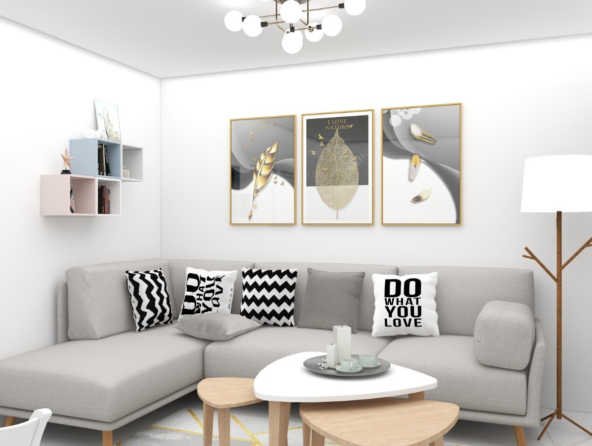 由于空间的足够性,可以考虑L型大沙发,厨房的移门***化增加客餐厅的采光,沙发对面放投影幕布,可做家庭影院,在不影响动线的情况下使空间感更舒适。