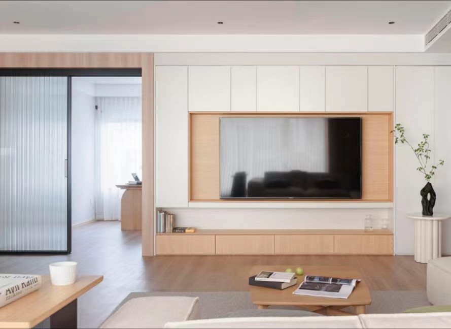 木饰面搭配深灰系纯色窗帘,大气耐看***感满满