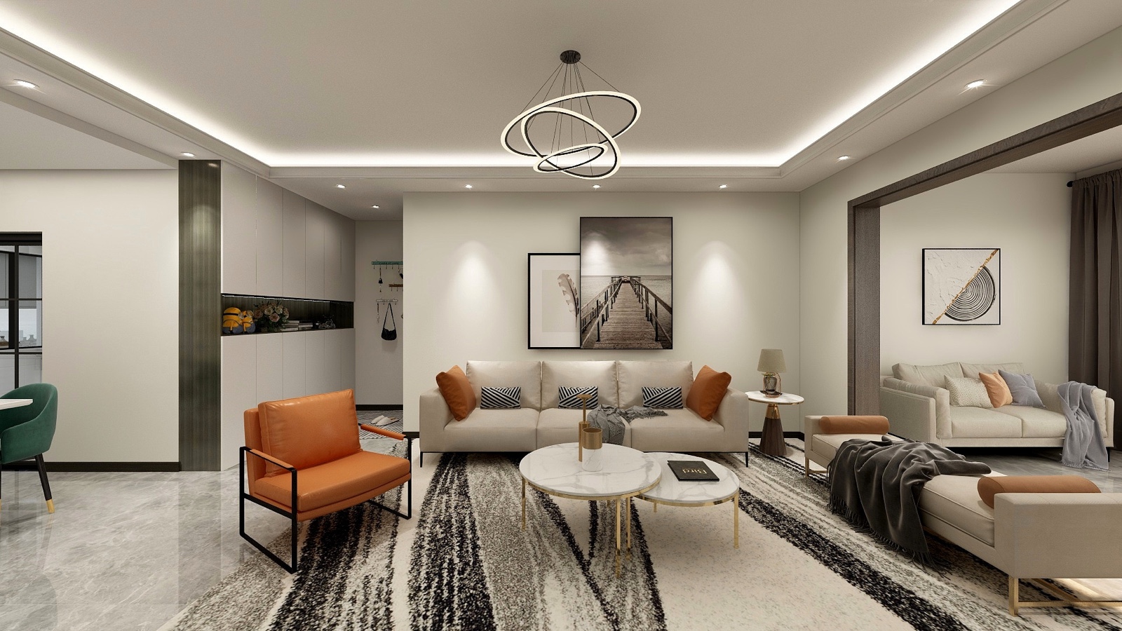整体灰褐色调,打造艺术范的生活场景,绿色背景墙加入,让客厅空间以全新的角度,呈现迷人的居家气质。