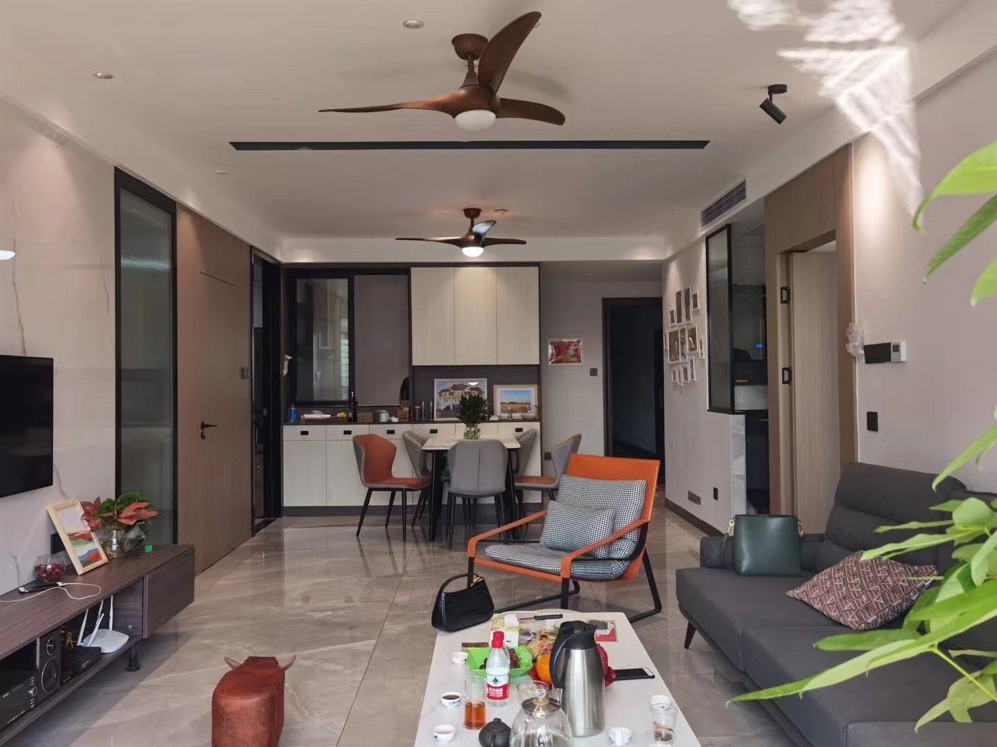此户型由大两房改成了四房,全屋设有客餐厅、主卧、儿童房、老人房、书房、一厨两卫一阳。全屋风格现代简约风,空间感简约大气。