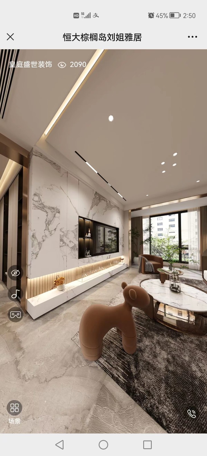 护墙板搭配岩板,金属线条点缀,转角一体延长,增加沙发背景视觉宽度