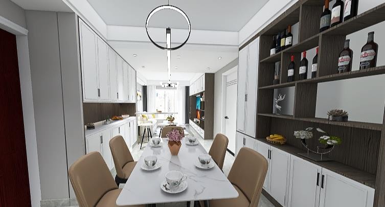 内蕴丰盈、细致入微的空间气质 包裹在这套三人居的开阔场域中 不局限于传统定义 客厅环形动线塑造明快张力 餐厅吧台的潜台词是清欢惬意