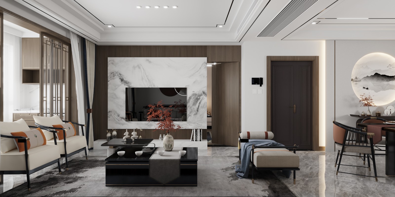 经典三房户型,中式装修风格