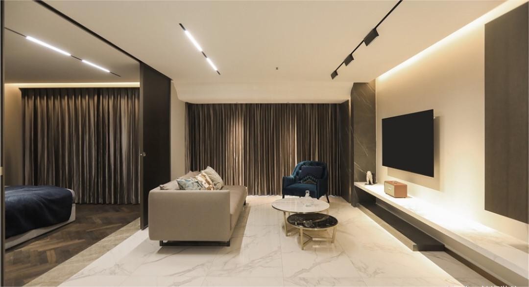 共同展现出简约而不失去品质的设计主题。让人们的心自然的沉静下去,透明的玻璃将原有的地下空间保持了通透的格局与体验。用留白点缀更有质感的空间,以现代轻奢色调构成主要的氛围感。大面积的落地窗引入了自然光增加了空间的通透度,多层次的线条和家具的统一色调,让室内空间显得更为整洁,一眼望去高颜值的设计雅致浪漫深入人心。