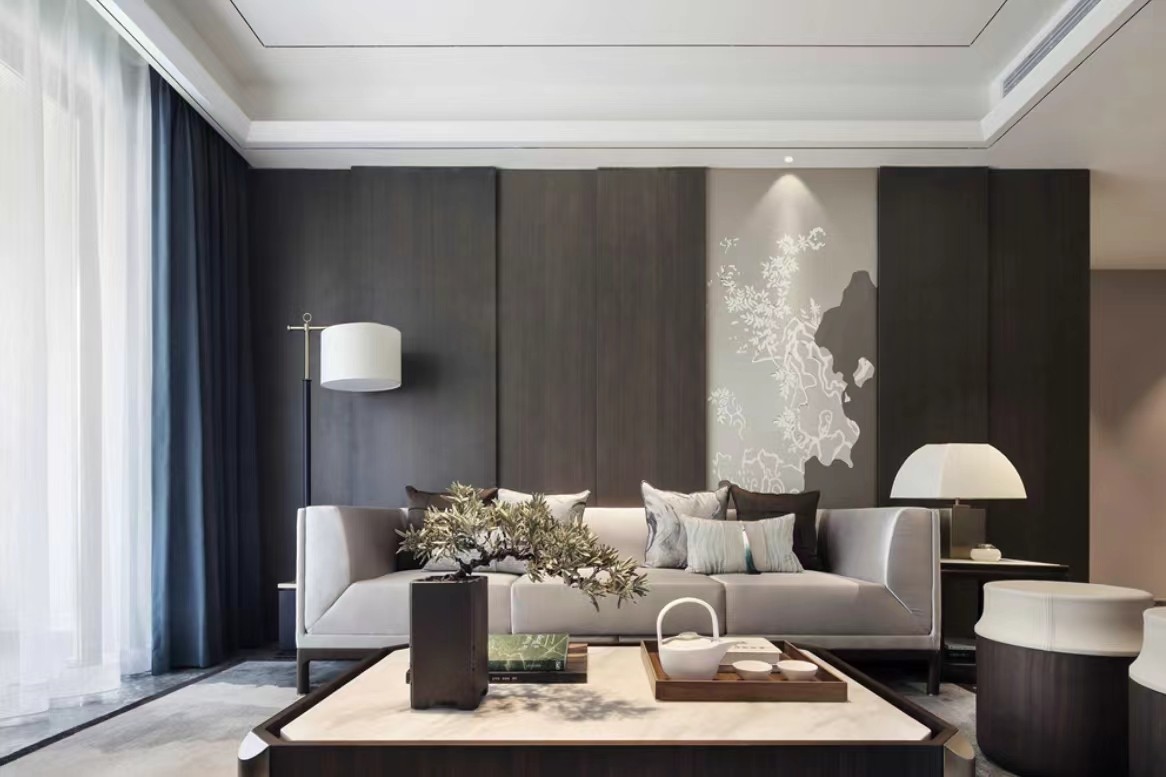 客厅给人的***感觉是端庄,深浅相配的咖色木饰面板做的沙发背景墙,凹凸设计产生律动感,一副烟灰色的简笔枝叶画成为点睛之笔,朴素但不简陋,自然而不匠气。