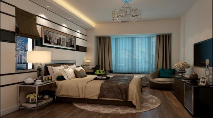 吊顶和水晶灯的运用给屋子带来奢华的感觉,屋里材质多以两面材质为主,温和的折射光打在材质上映射出的光晕体现出环境的***感