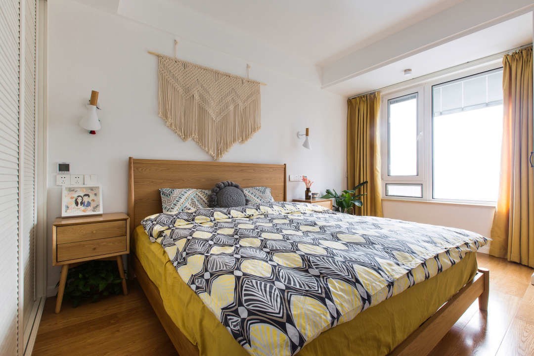 客厅没有做任何墙面造型,墙面就是最简单的白色乳胶漆,浅灰色三人沙发搭配姜黄色单人沙发,简单的装饰画作为点缀背景,整体的氛围安静舒适。