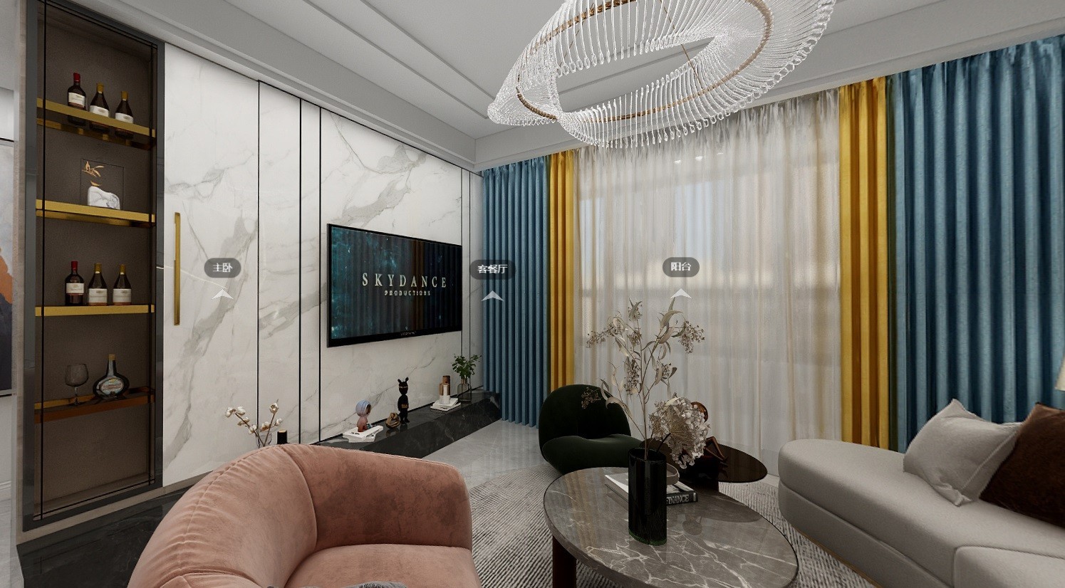 120混搭大平层效果图