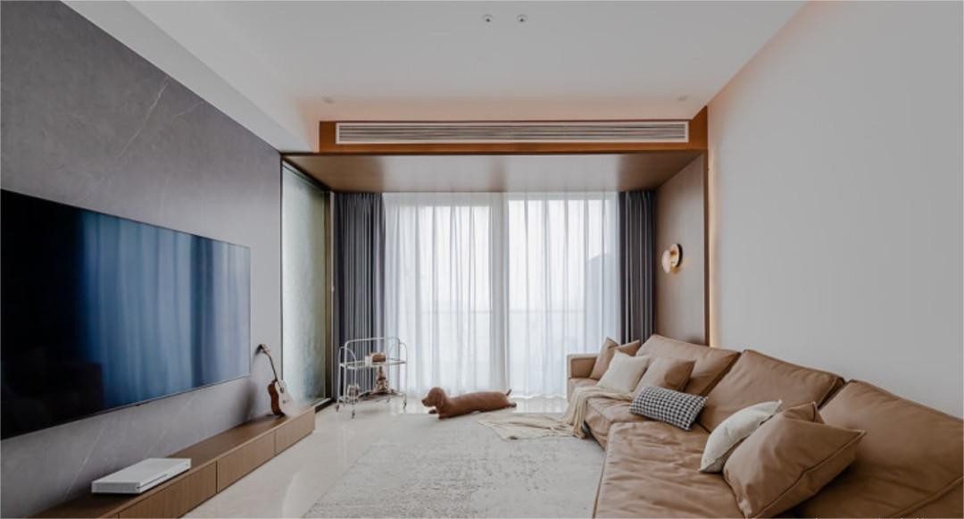 背景墙选的浅灰色岩板,电视柜直接落地简洁大气。无主灯设计光源,在傍晚降临的时候撒在墙面的光晕给人一剂安心感。家里的两只狗狗喜欢拆家,小物件的家具统统舍弃,这样更好的方便他们活动。 设计师选择可开放式设计,以确保空间的整体性,给人以开阔的视觉体验