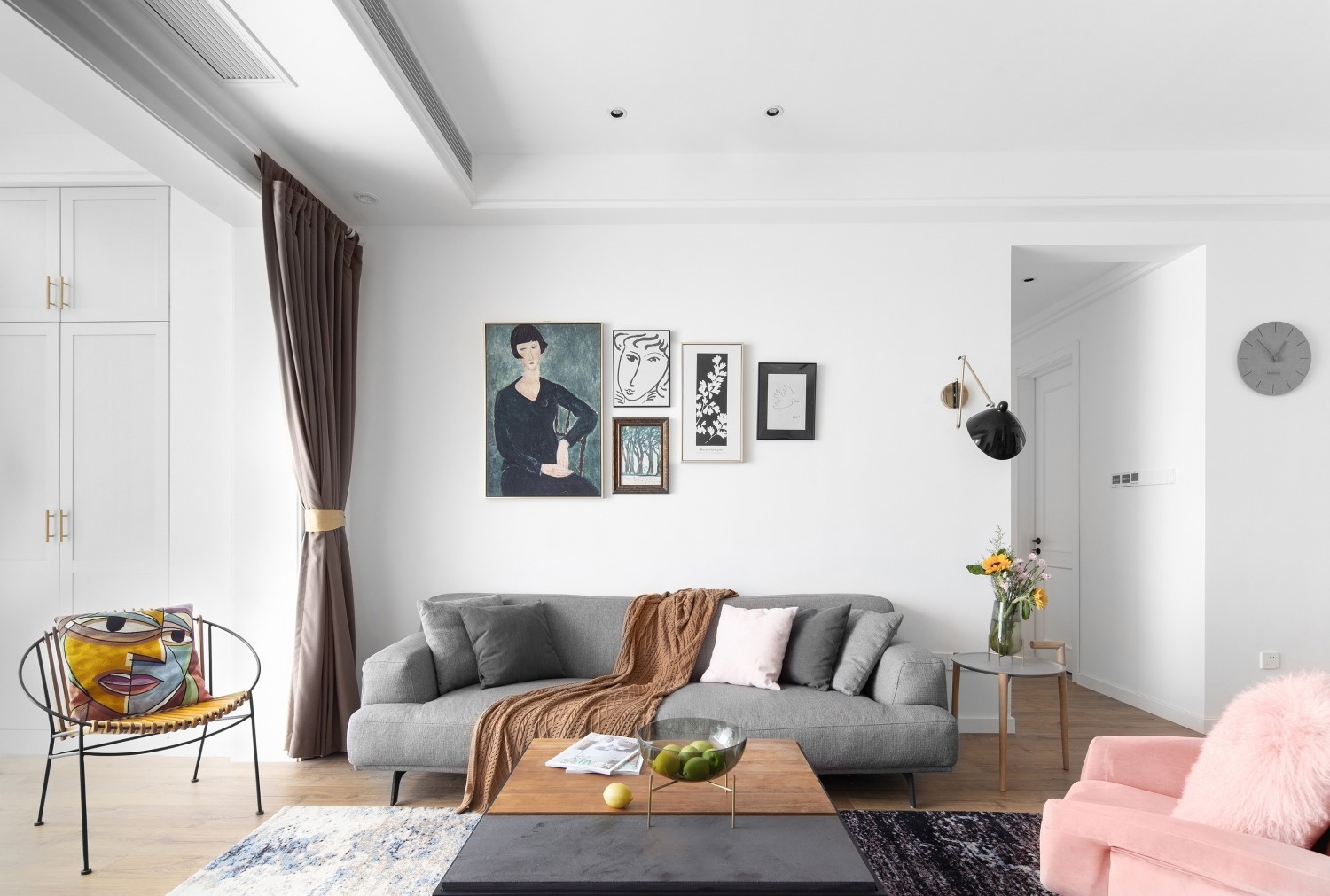 客厅部分以大面积地板为主,茶几的搭配也是实木和素水泥的搭配,显得空间更有质感。