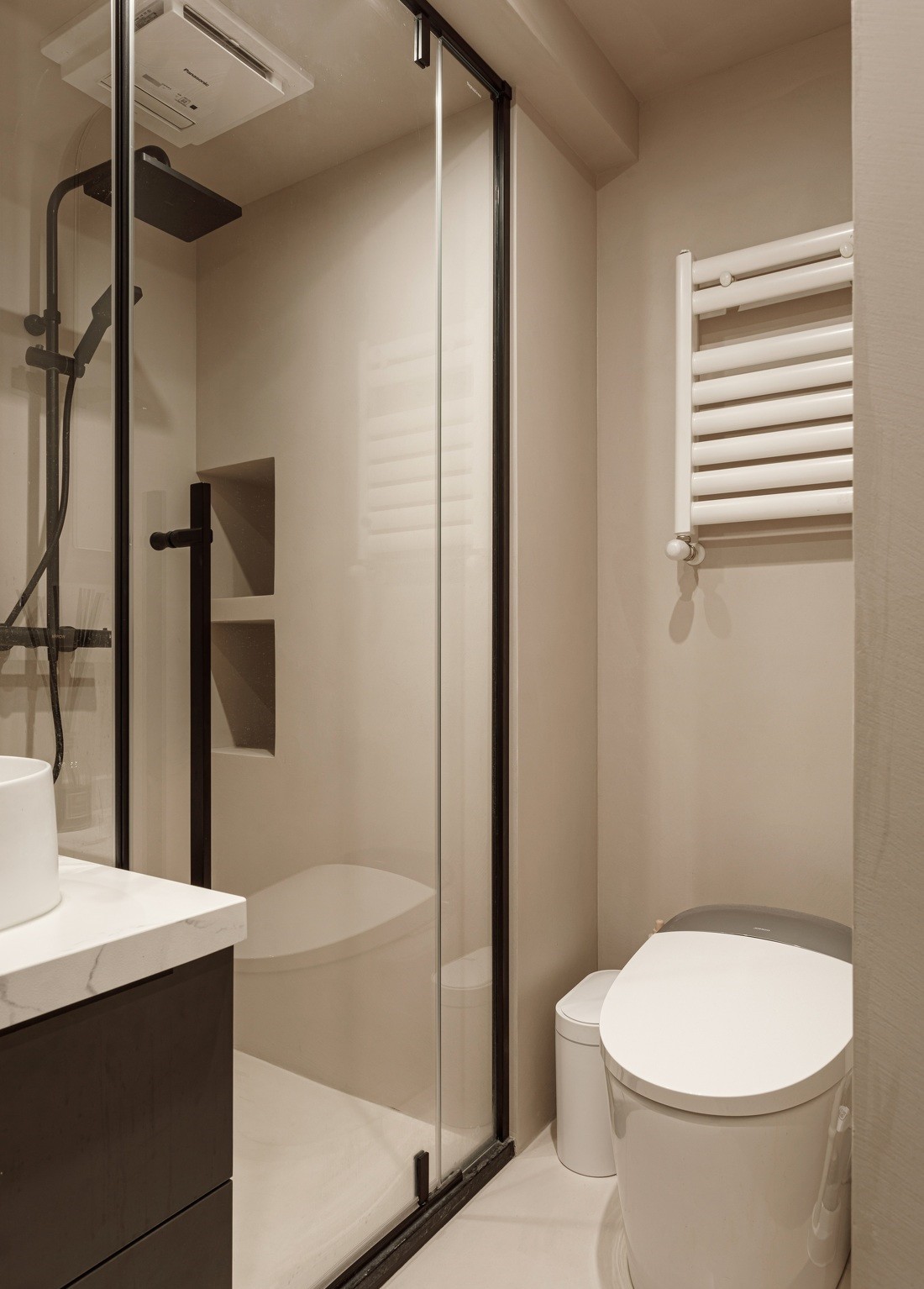 卫生间采用微水泥涂料,没有过多华丽的装饰,却可以彰显***质感