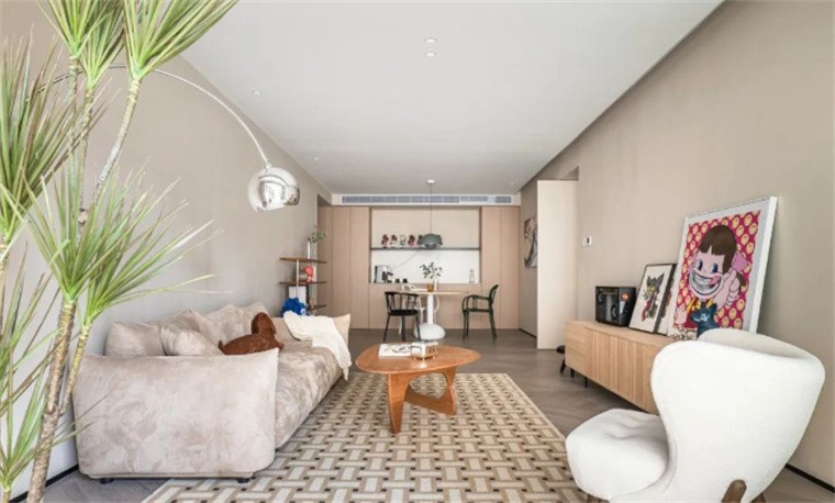客厅没有做多余的设计,更多的突出软装家具在其中的角色,让整个空间随着家具的更迭,而呈现不一样的面貌