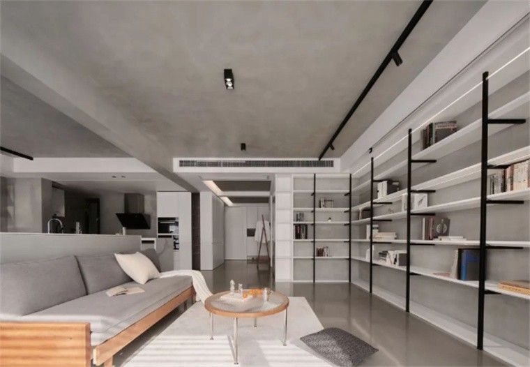 客厅纳入阳台,拓展使用面积,无主灯顶面设计,通过极简的收纳让空间更加简洁通透