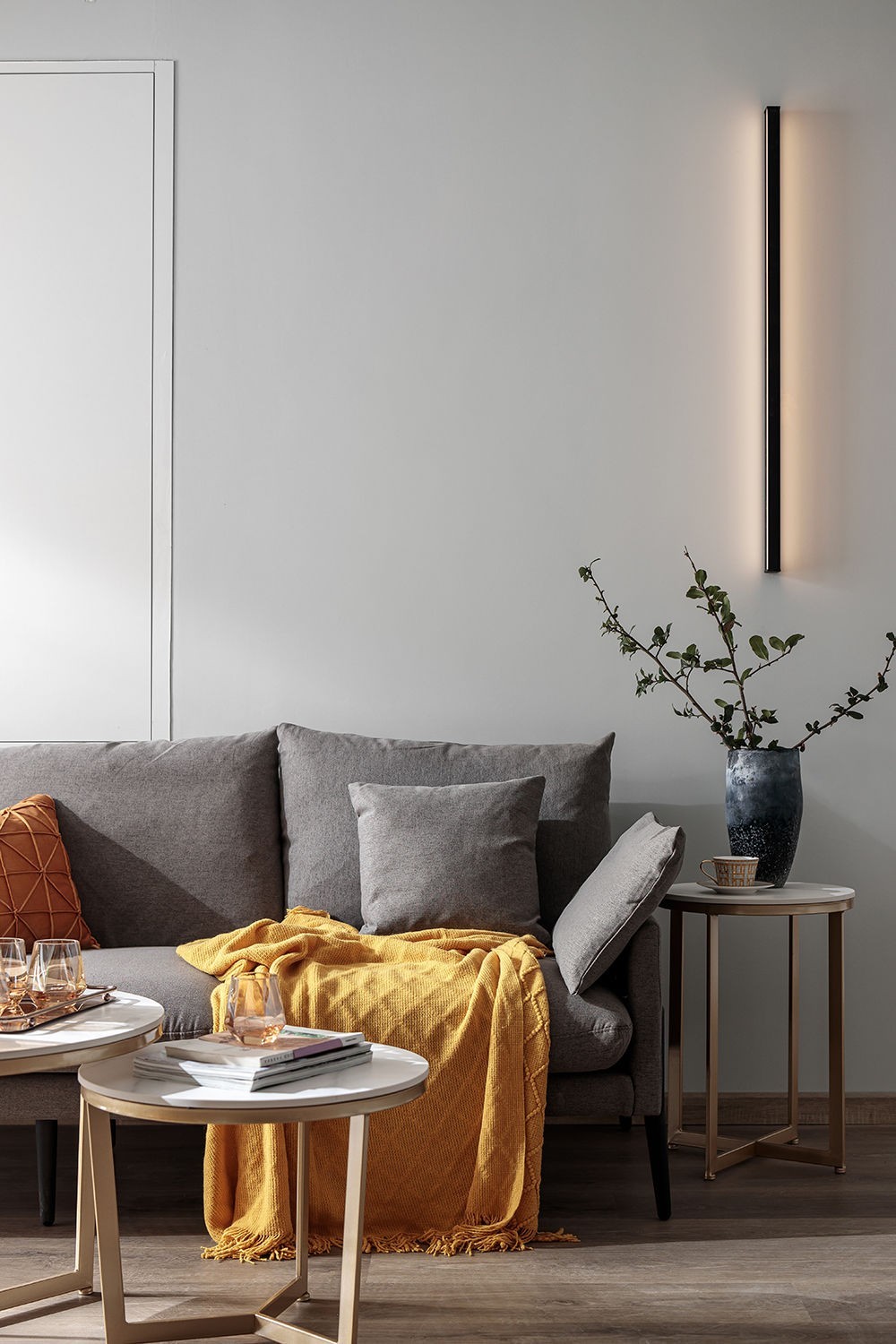 客厅原本透露着一种未来科技的冷静与严肃,灰色的空间仿佛是科幻电影场景,而一抹亮黄色打破了原有的寂静。成为了整个空间的亮点。