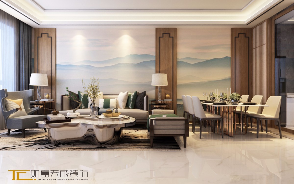 新中式非常讲究空间的层次感,材质的搭配使空间更加丰富