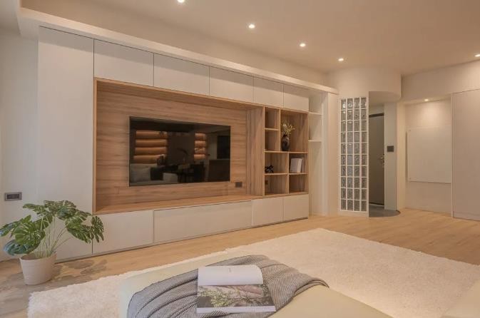因居者人口多,收纳更需大量扩增。从电视主墙为始,以白系门片柜面为基底,内隐足量层柜
