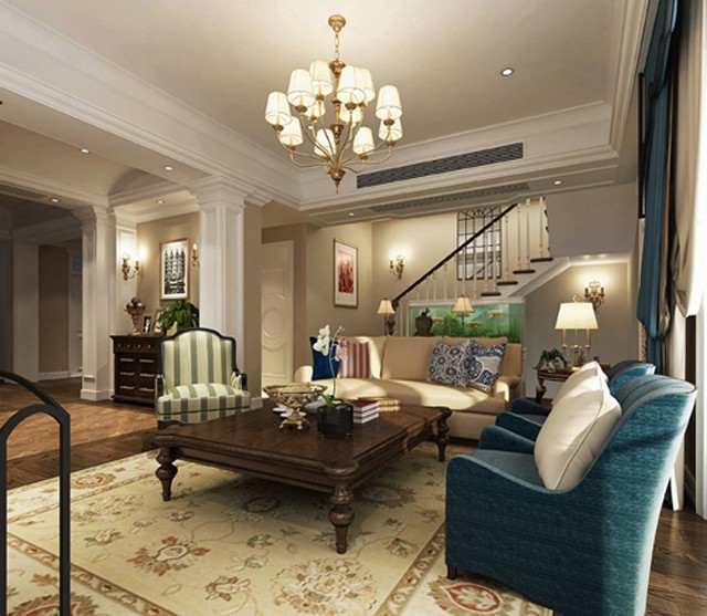 深色的家居搭配嘉宝莉浅色系涂料美式风格尽显,美式风格中典型的壁炉设计,是的整个空间更加整体,暖色的灯光搭配浅色系的涂料氛围感满满。