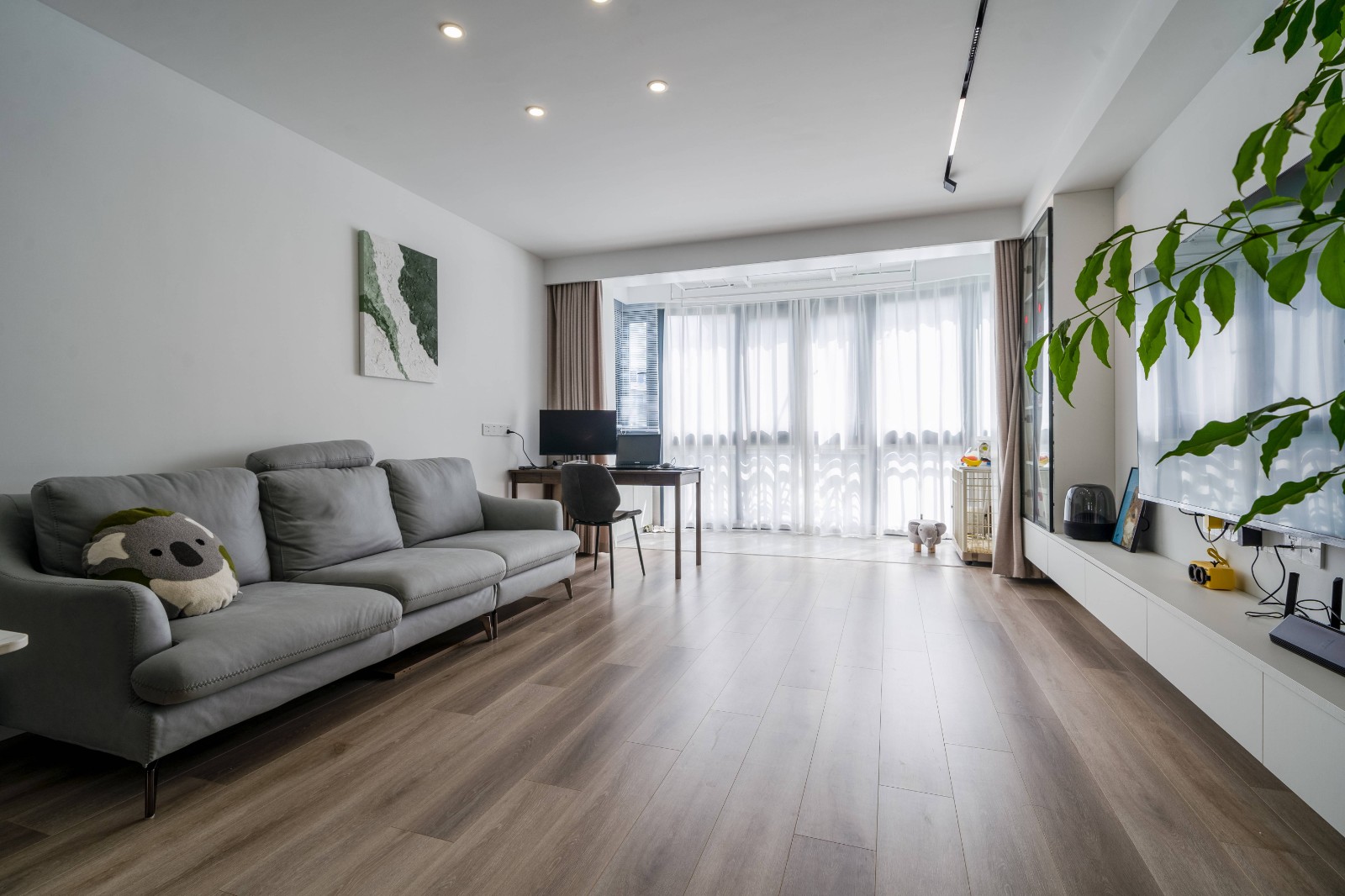 无主灯设计,筒灯代替照明。阳台打通,窗帘取代移门,空间更宽敞,视觉更通透。