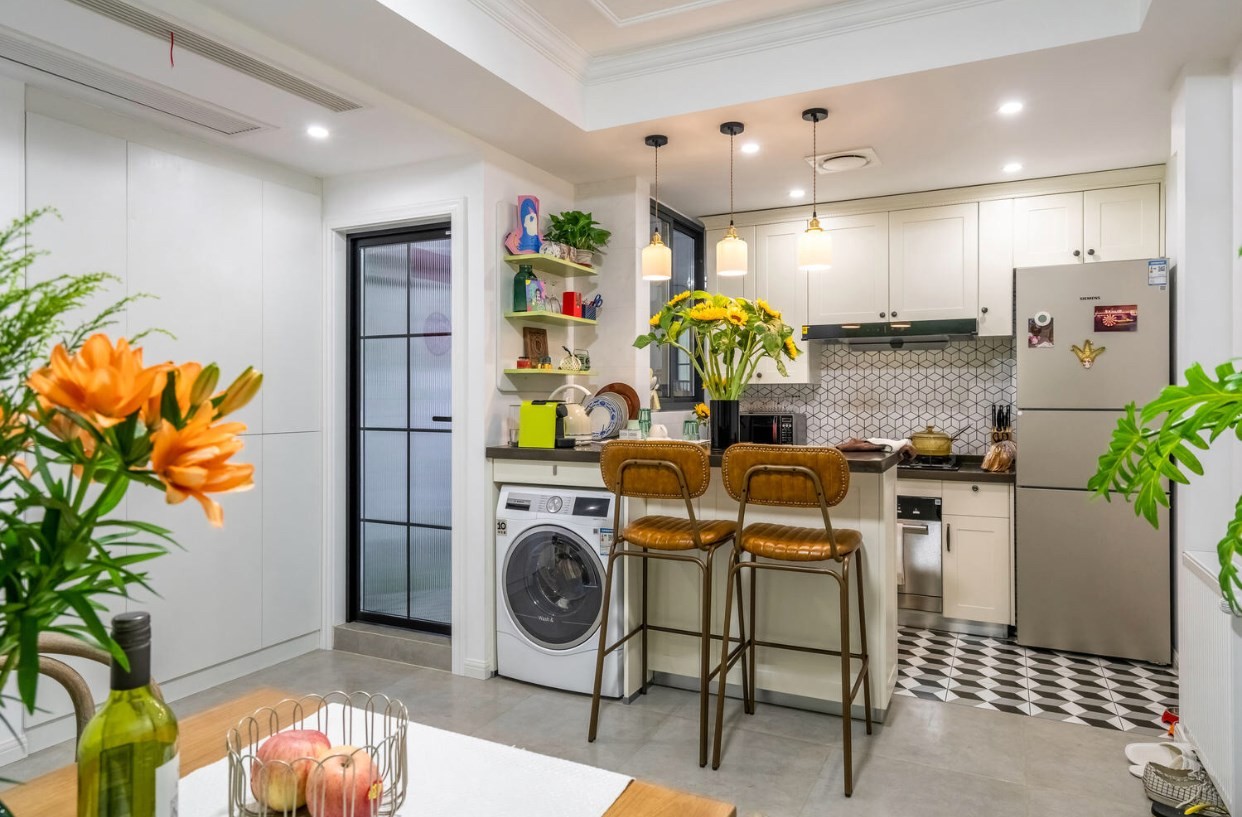 同时洗烘机的位置在家中房间与公卫的交界处,家务动线更加合理,下午西晒时阳光非常好,女主人有时候甚至会在公卫里晒一晒抱枕