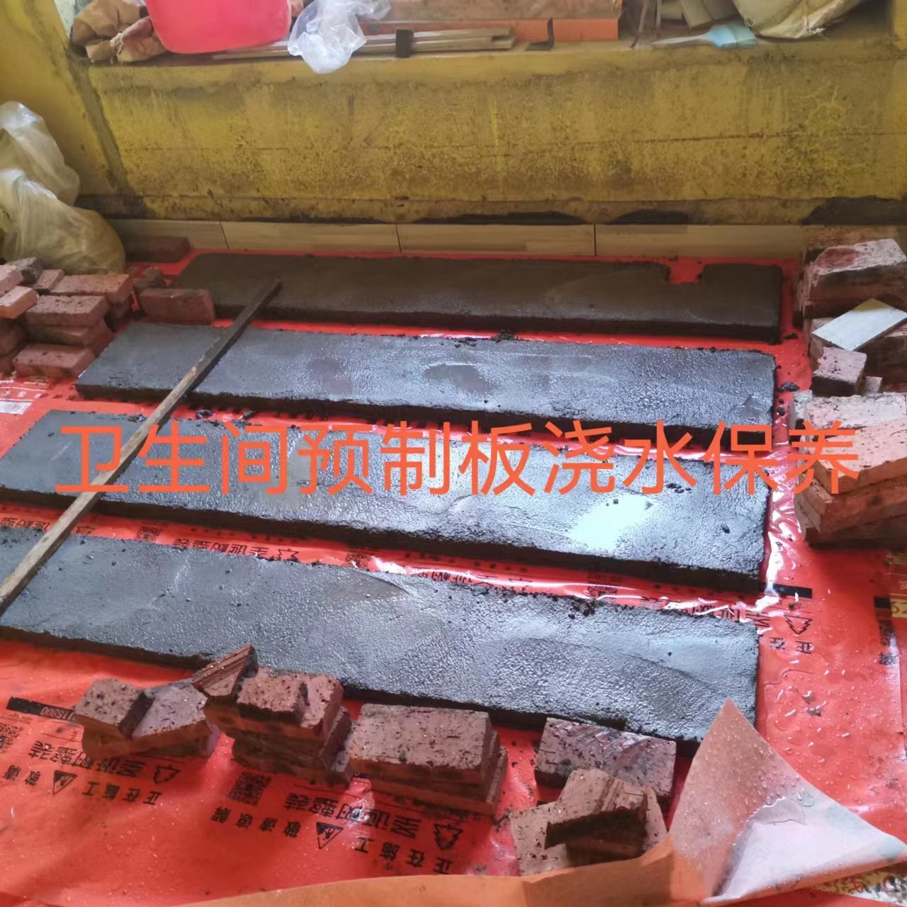 现场浇灌水泥预制板并浇水保养,防止开裂