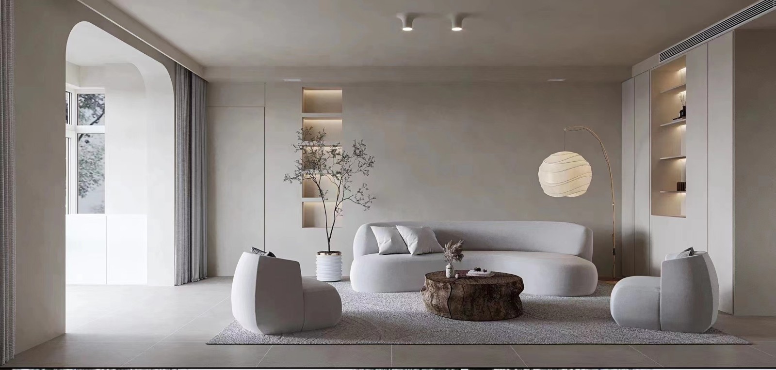 家居采用意式风格,家居的柔软与墙面的坚硬形成了对比