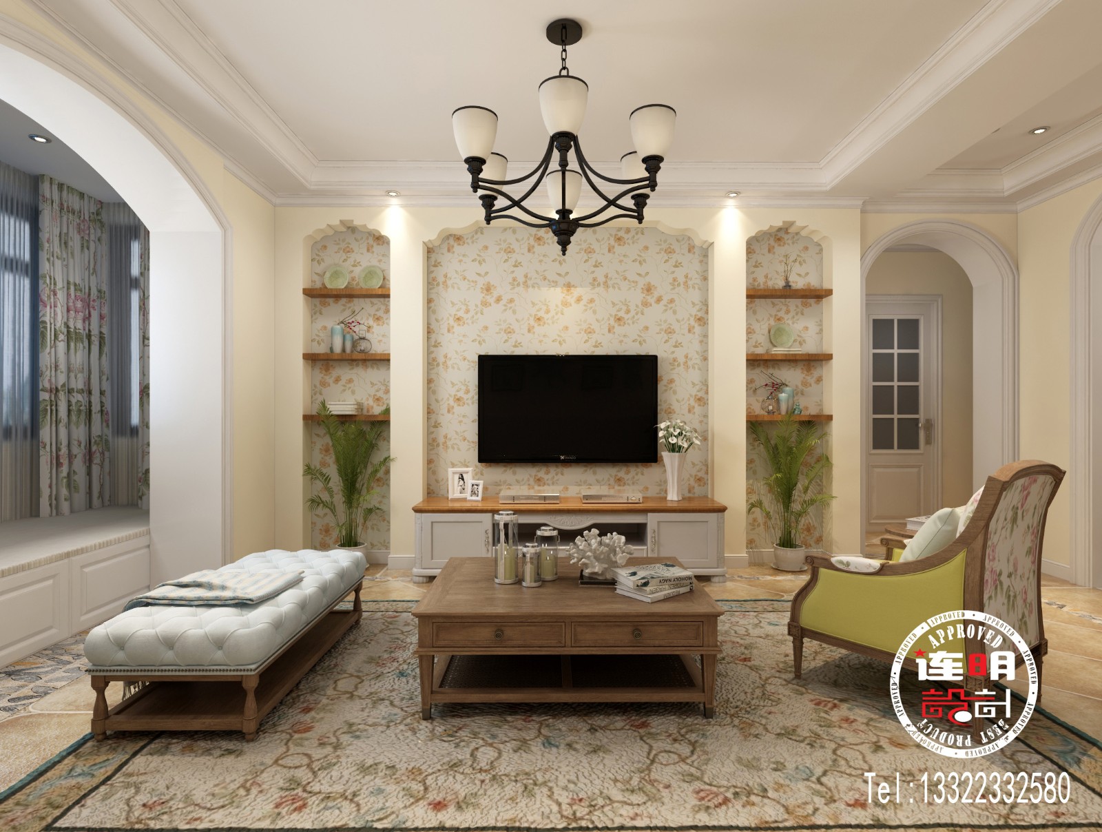 美式小沙发,配合多框壁画,点缀美式亮点。