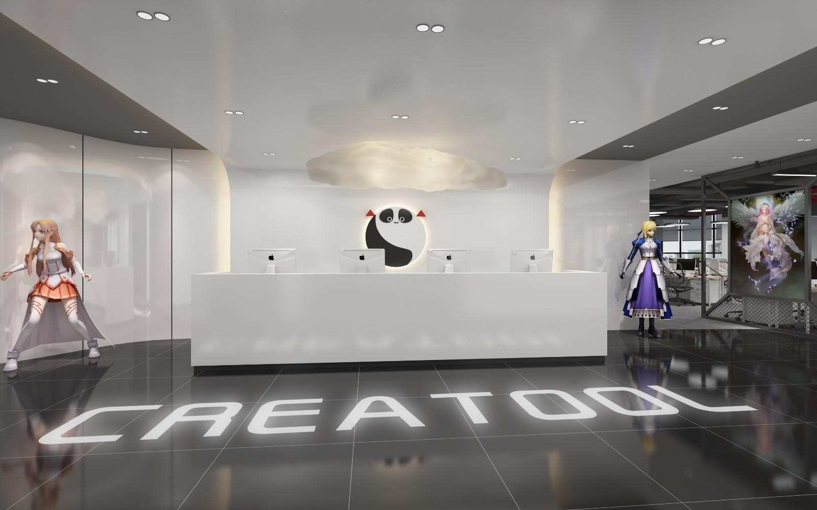 该公司以经营动漫产品为主,前台的设计含盖了公司主营产品,映入眼帘的是以动漫为主题的空间,展现公司文化软实力;