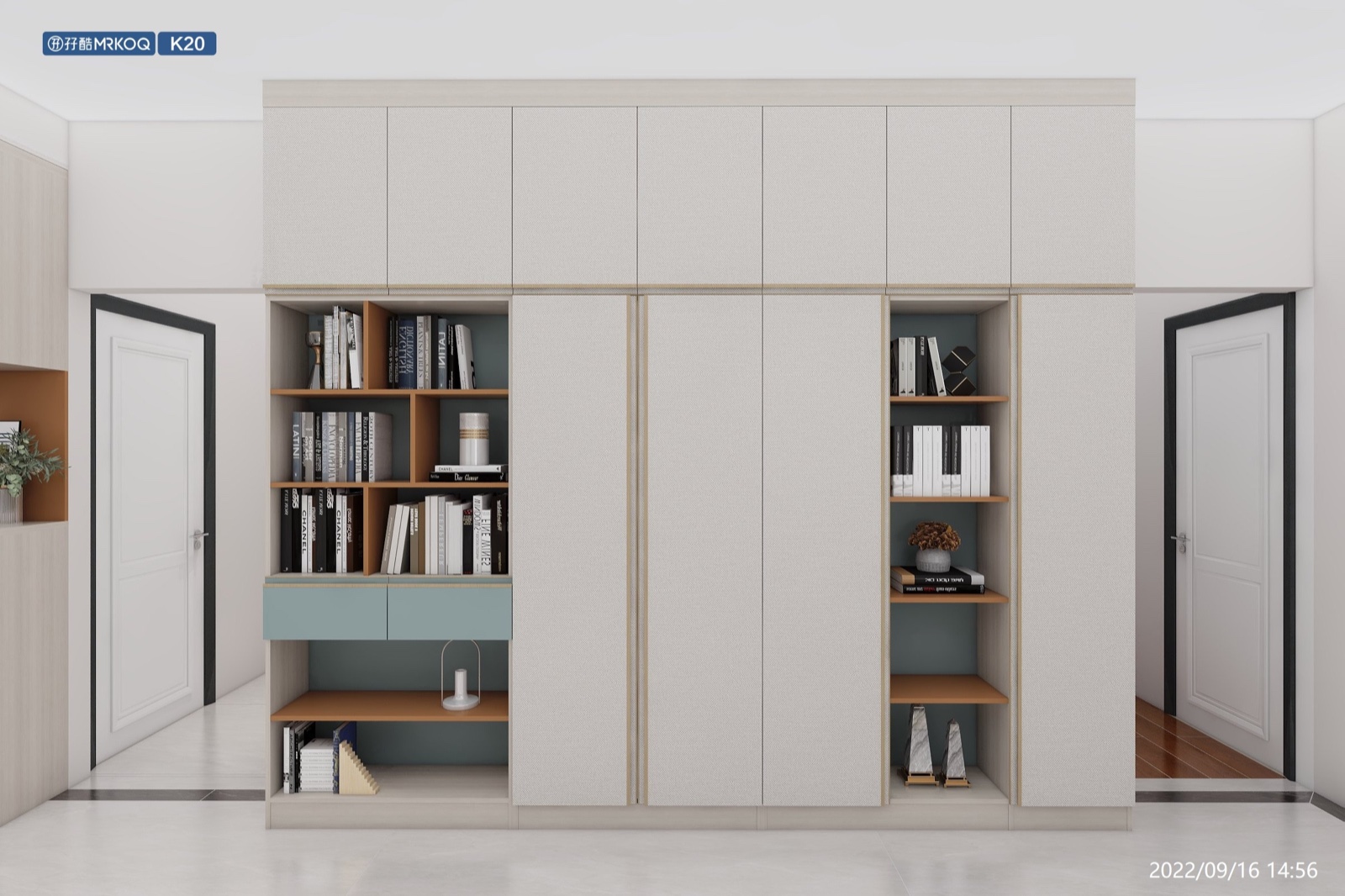 满墙到顶书柜组合,开门与封闭兼具