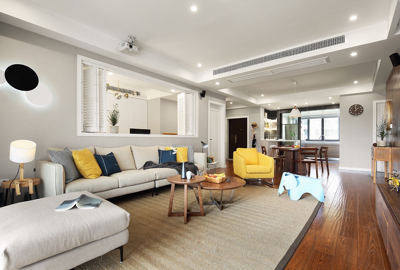 很规整的一个户型,北欧风格,整体上简洁、直接、功能化且贴近自然