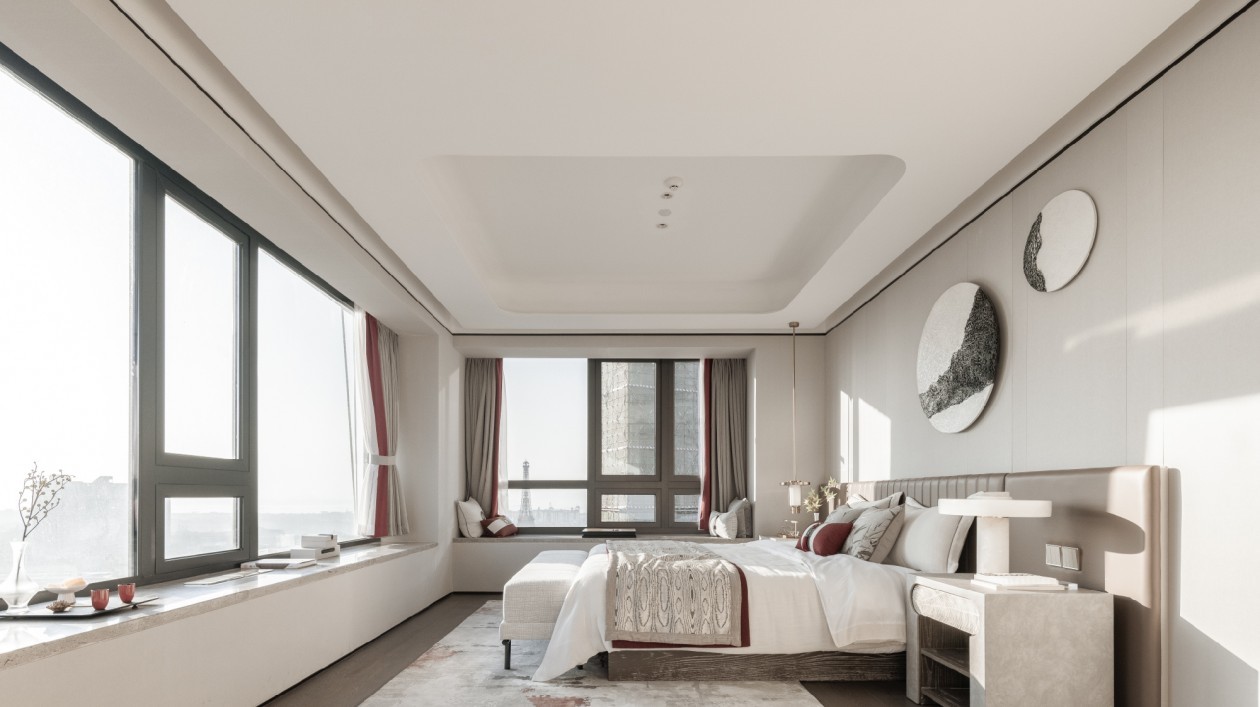 柯布西耶说,“氛围生于光,空间成于光。”在大面宽的设定中,简约原木色调的温馨氛围得以与存在感十足的光影相互成就,不被尺度约束。在阳光洗礼中拥揽一城景观,晨暮更迭,静谧光影在变幻中讲述时间以外的品质生活。