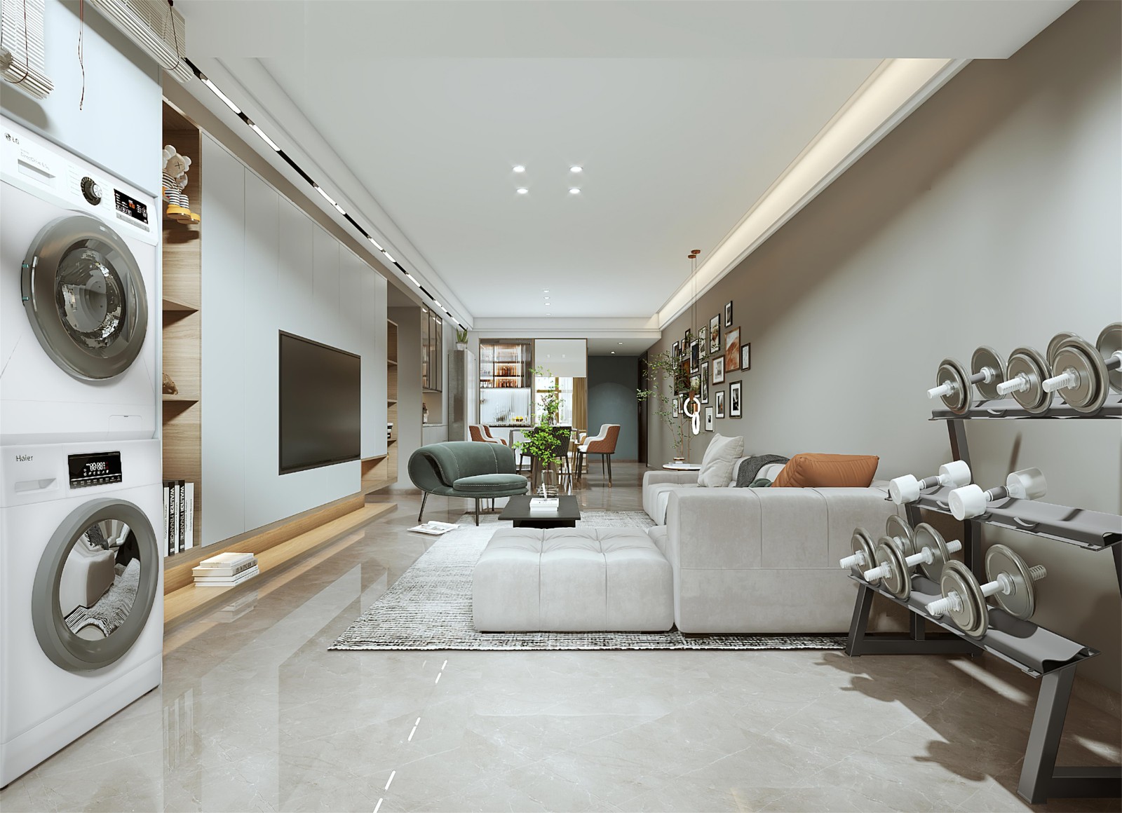 客餐厅侧拍 阳台位置除了做晾晒功能,还可增加休闲区域,不影响客厅和会客和活动区域。升整体灯光效果。