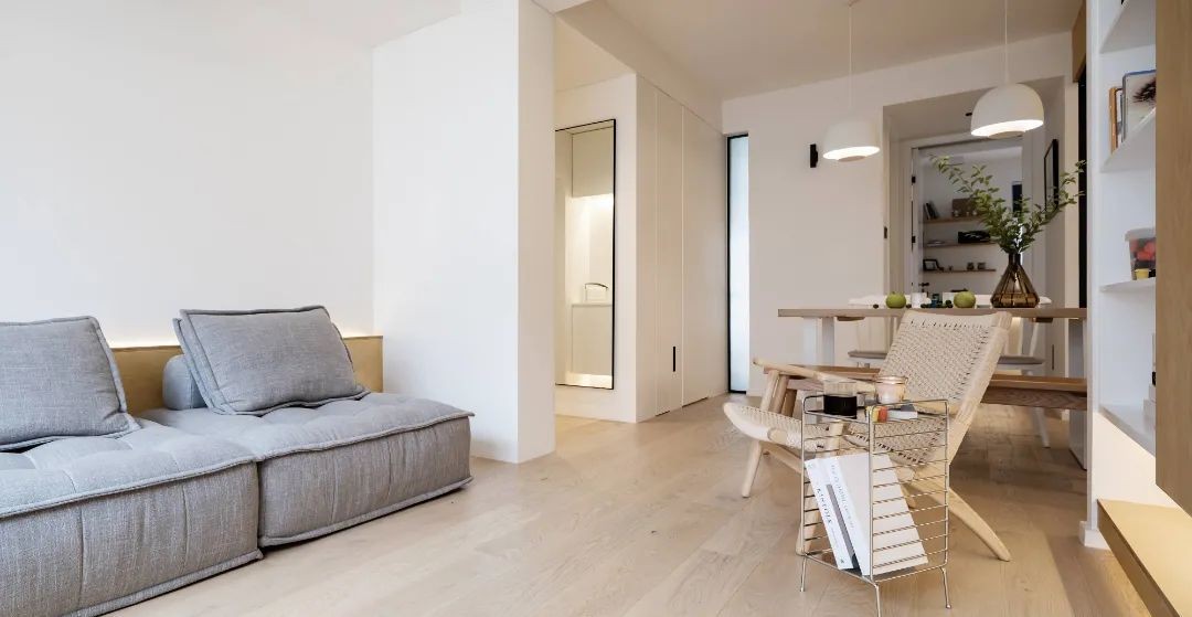 客厅有一整面飘窗,飘窗在住宅中可塑性不大,但在这个空间里却起到了极重要的作用。