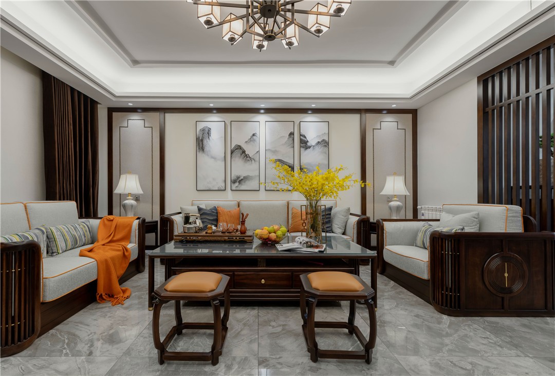 新中式是以中国传统古典文化作为背景的,营造的是极富中国浪漫情调的生活空间,如红木、青花瓷、紫砂茶壶以及一些红木工艺品等都体现了浓郁的东方之美