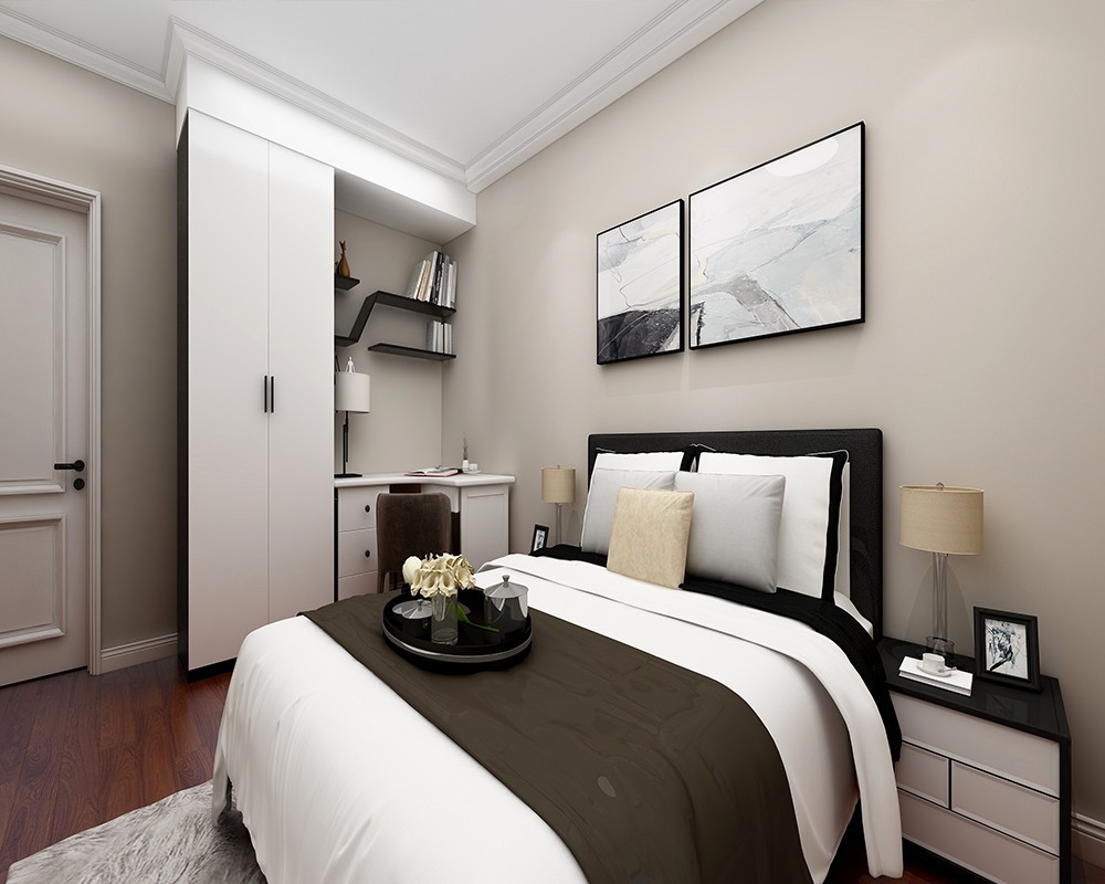 户主想要在喧嚣的都市中拥有一方安宁、惬意的休憩空间,因此在整体现代风的空间里融入一个不同风格的新中式卧室