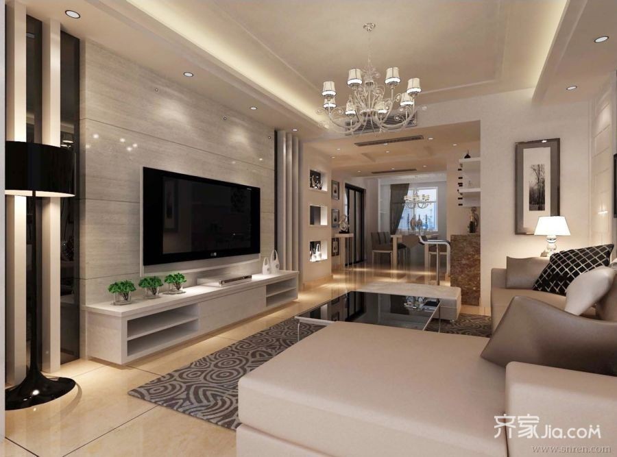 客厅设计,空间中色泽交替与造型转换,充分调动视觉;纵向面延展、线性收边的设计手法,创造出线与面的完美结合,丰富了艺术形态在简单空间里的多层次变化