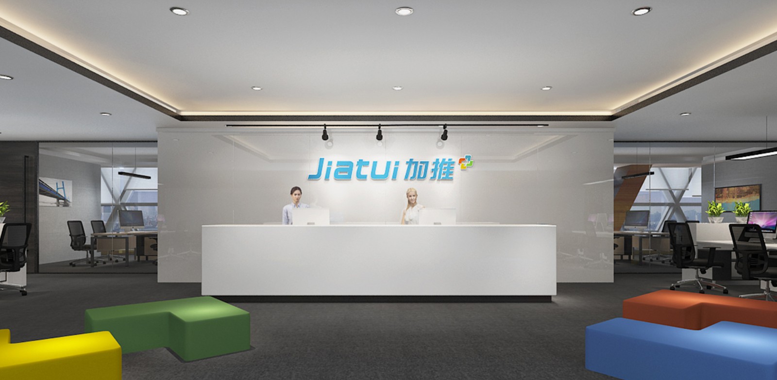 深圳市加推科技有限公司是创立于2017年,是一家研发智能CRM的技术提供商。这家年轻而充满活力的科技公司不希望以惯用的工程解决方案来创建自己的新办公室,因此希望上诚装饰能为其度身定制一个充满创新力的工作空间。