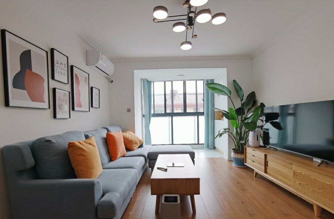 客厅阳台做为休闲区使用,偶尔在这边晒晒太阳看看书,运动运动,十分惬意。