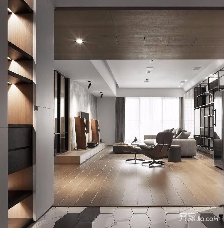 瓷砖与地板的结合,灯光的点缀,一个充满想象的空间