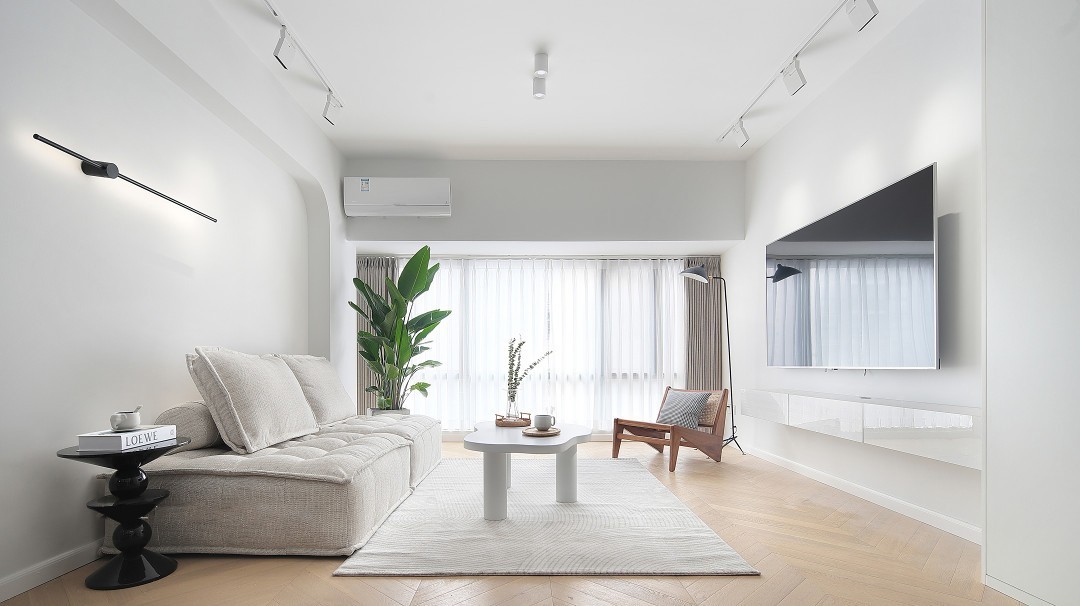 在设计上,沙发背景墙设计了一个有弧度的造型,提升线条美感,放眼望去,会比直角更加柔和。