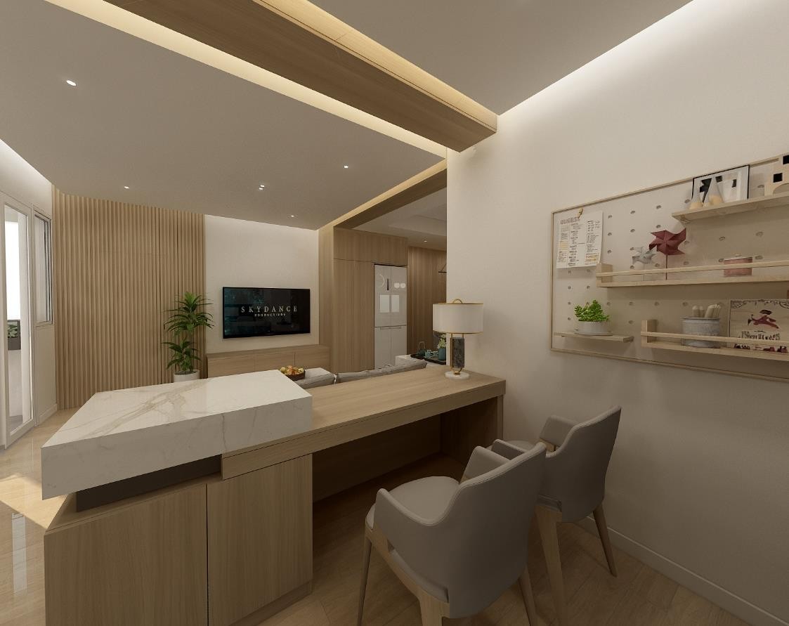 开放式书房设置与客厅会客有机结合,提高了空间使用性和层次感