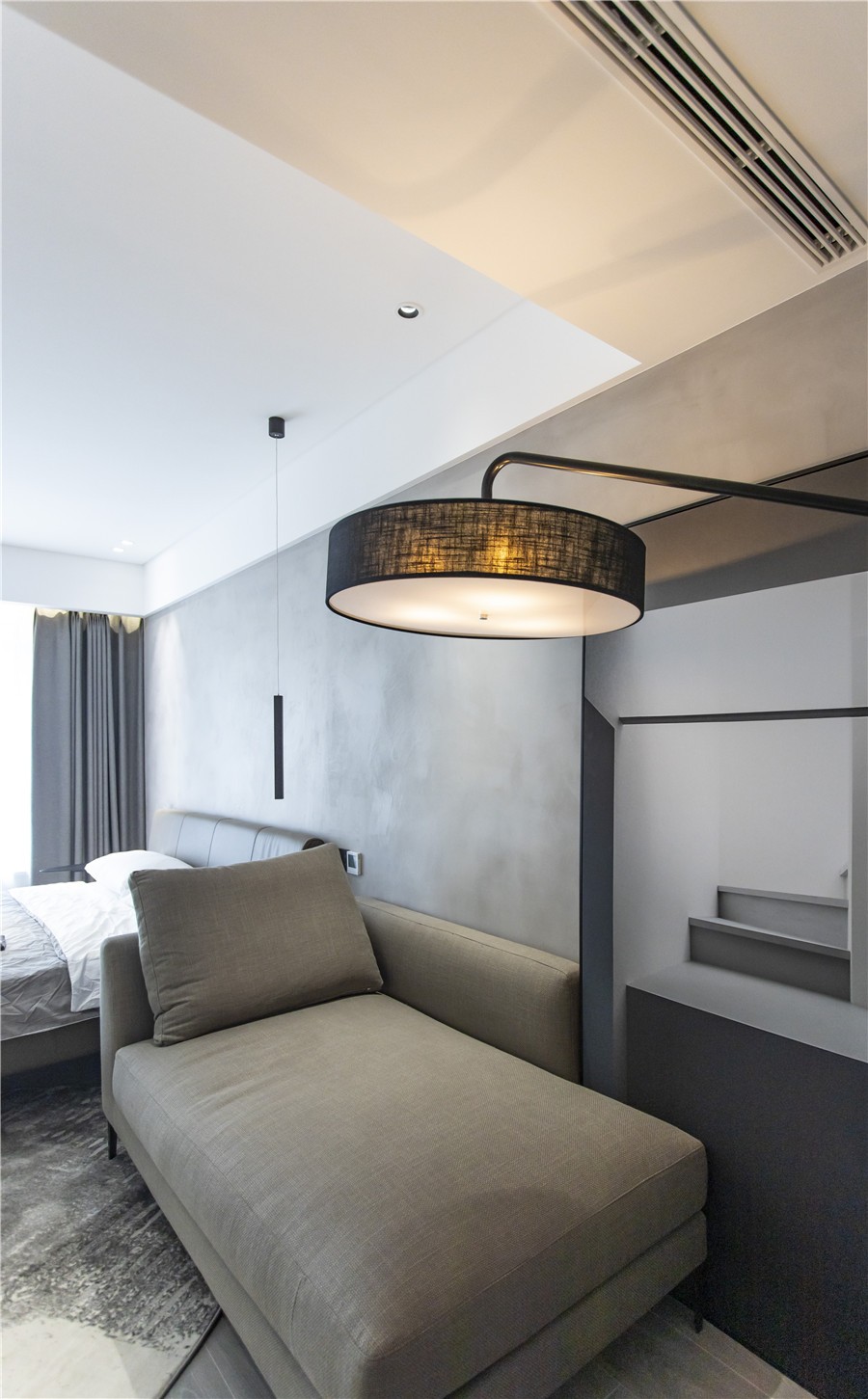 本案业主一对年轻夫妻,自由随性,钟爱黑白灰极简格调居所。设计师与业主对色彩和设计的调性的认知有很多的契合点。