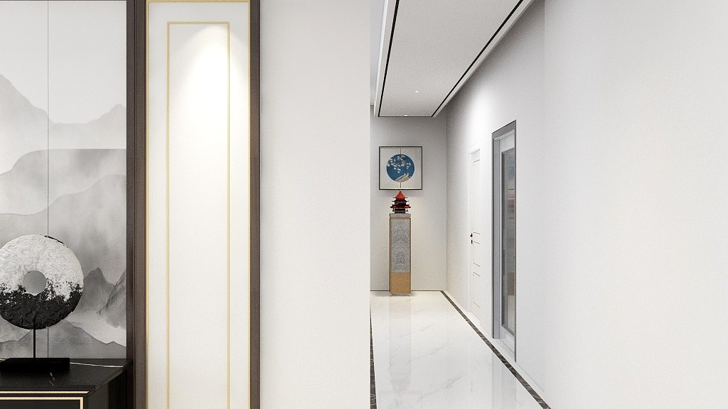 走廊玄关顶面平顶线条与地面呼应